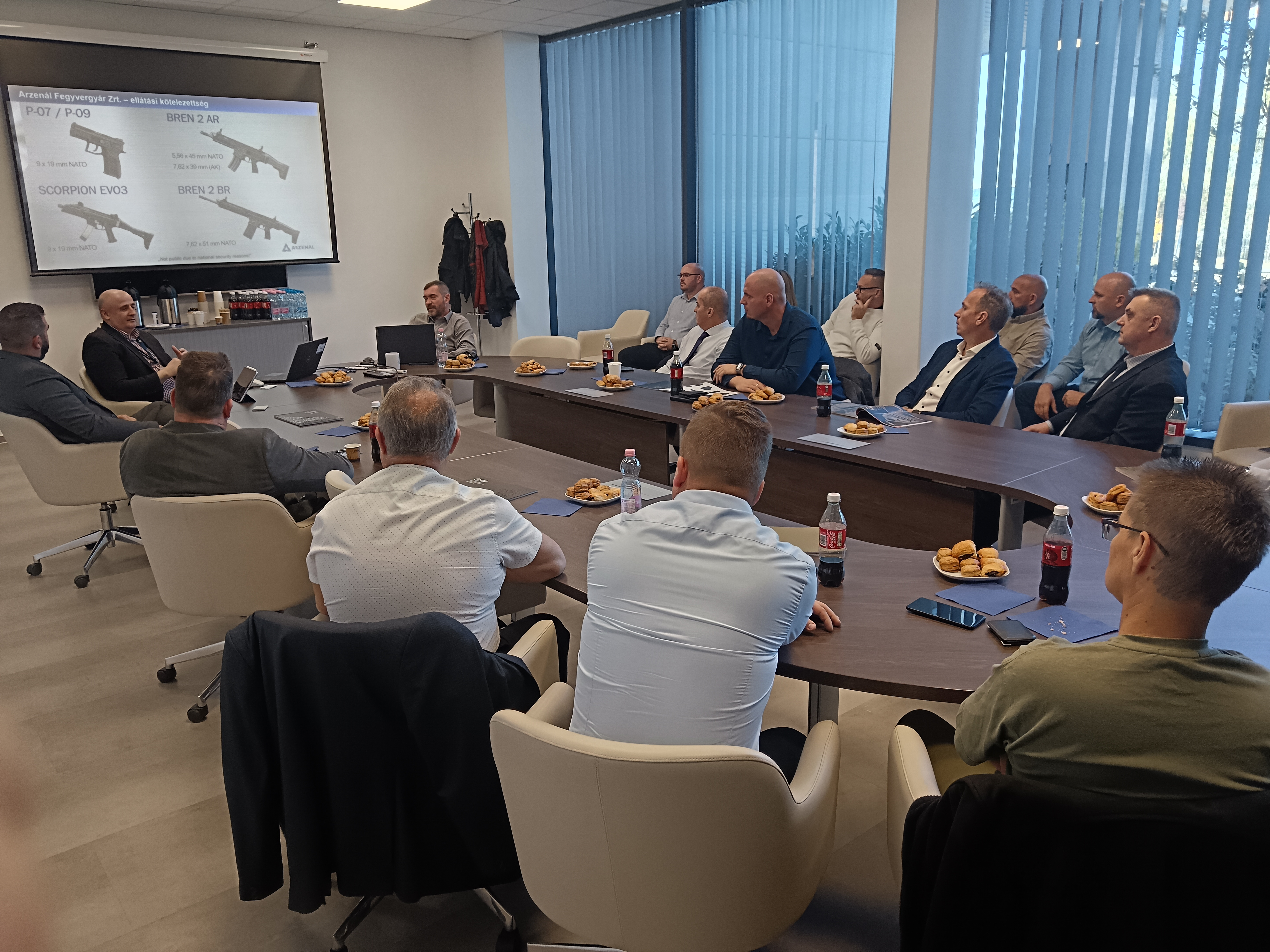 Ezt követően Kiss Attila, az ARZENÁL Fegyvergyár Zrt. vezérigazgatója, valamint Szabó Dezső, a Colt CZ Hungary Zrt. ügyvezető igazgatója köszöntötte a résztvevőket és tartottak előadást az Arzenál Fegyvergyár Zrt. történetéről, szervezeti felépítéséről, tevékenységi köréről.