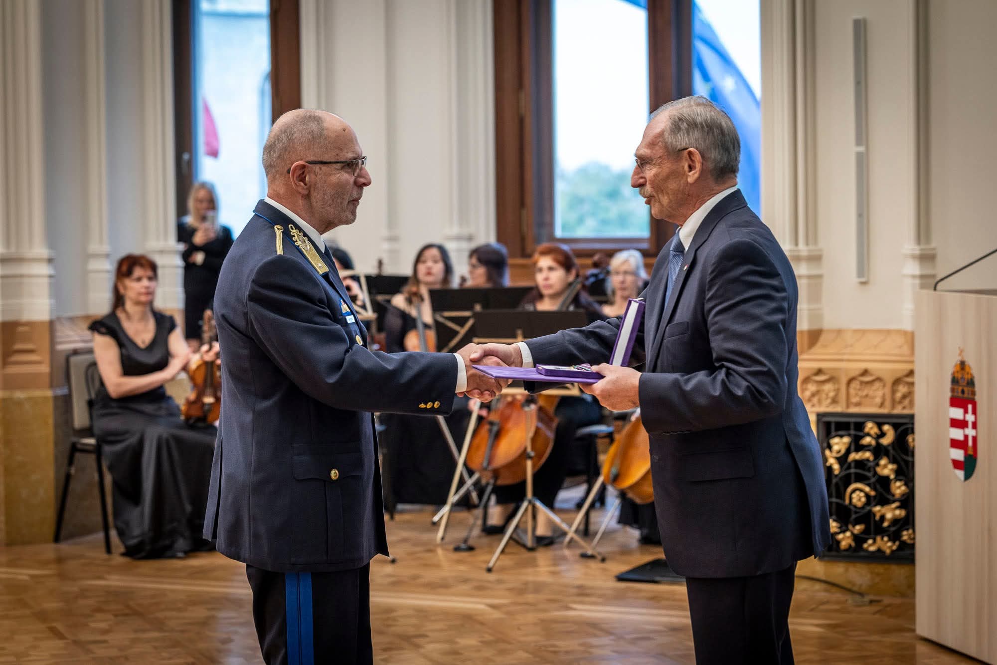 Dr. Pintér Sándor, Magyarország belügyminisztere nemzeti ünnepünk, október 23-a alkalmából a büntetés-végrehajtási szervezettel történő hatékony és eredményes szakmai együttműködés érdekében kifejtett tevékenysége elismeréséül „SZENT ADORJÁN ÉRDEMJELET” adományozott SAMU ATTILA LÁSZLÓ r. dandártábornok úrnak, a Belügyminisztérium sajtófőnökének.