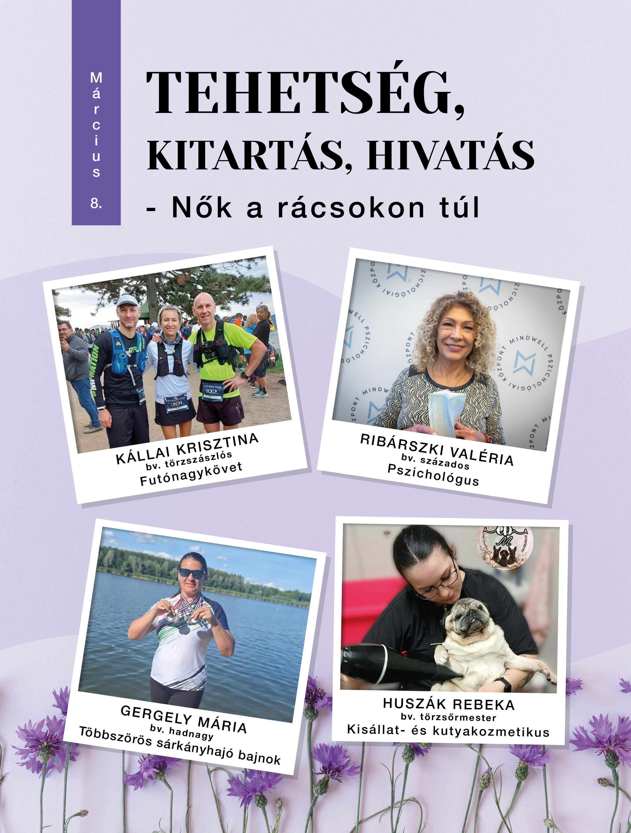 Nemzetközi nőnap alkalmából köszöntjük a büntetés-végrehajtási szervezetnél szolgálatot teljesítő több ezer kolléganőnket, akik nem csak a munka világában veszik sikerrel a mindennapi feladatokat, hanem a magánéletben is az új kihívásokat keresik. Március 8-a, nőnap apropóján négy kolléganőkön keresztül mutatjuk be azt a sokszínűséget, ami a bévés hivatás mögött rejlik.