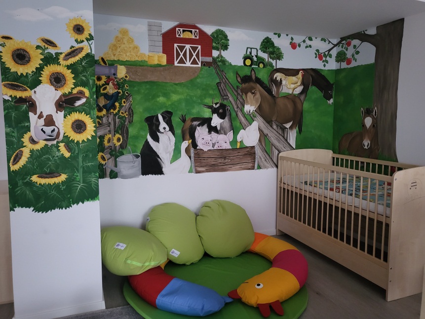 A közel 290 m² alapterületű bölcsőde egy korábban használaton kívüli épületrészben kapott helyet, teljesen elkülönülve a fogvatartotti részlegektől. Felújítása nagyjából egy évig tartott, amely során 57 fogvatartott több mint 23 ezer munkaórában dolgozott az intézet munkatársainak irányításával, hogy a régi épületből egy modern, barátságos és biztonságos gyermekparadicsom születhessen.