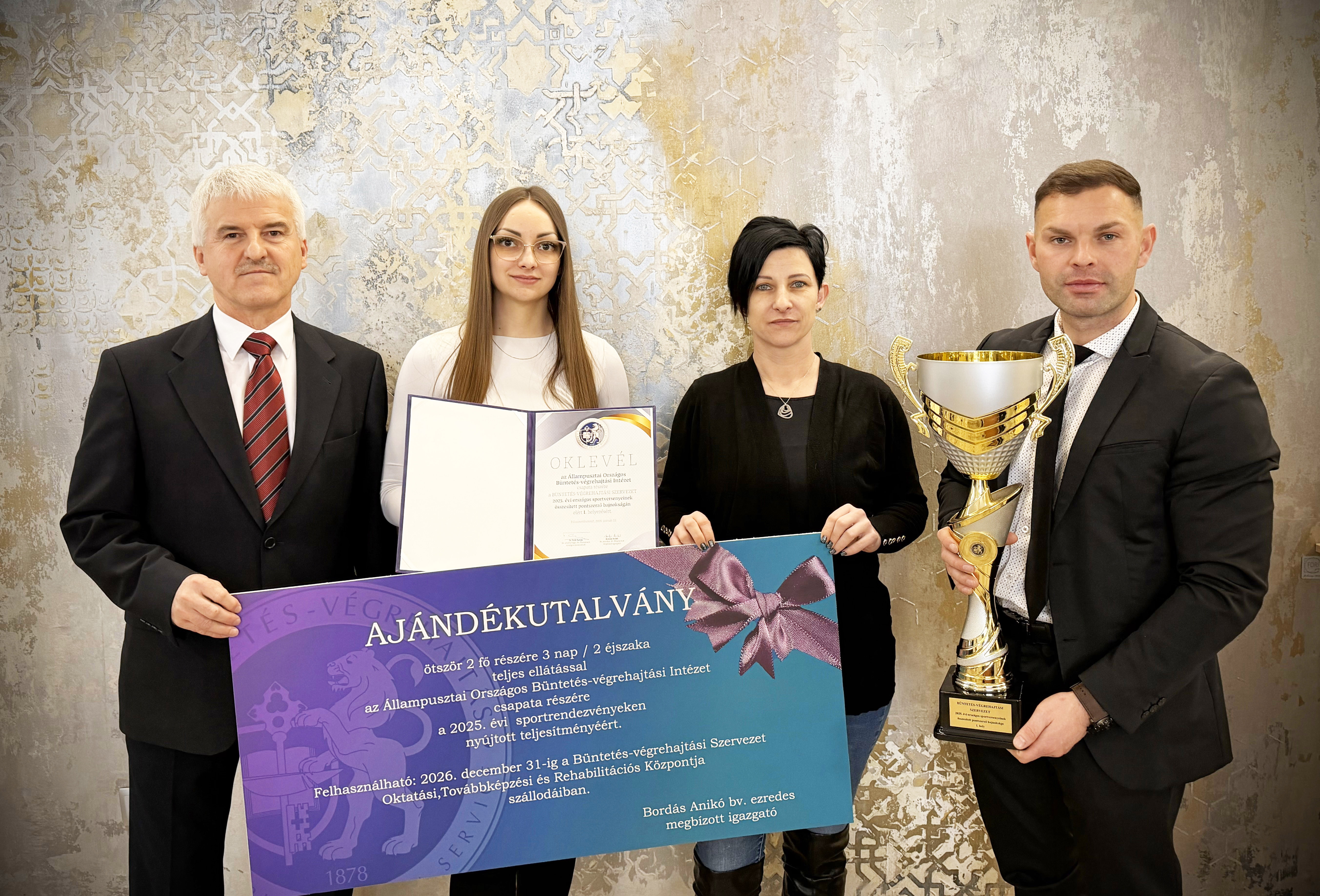 A díjakat Bordás Anikó bv. ezredes, a BVOTRK megbízott igazgatója, a BvOP Humánszolgálat vezetője, valamint a rendezvény díszvendége, dr. Varga Péter r. dandártábornok, a Magyar Rendészeti Sportszövetség ügyvezető elnöke adták át.