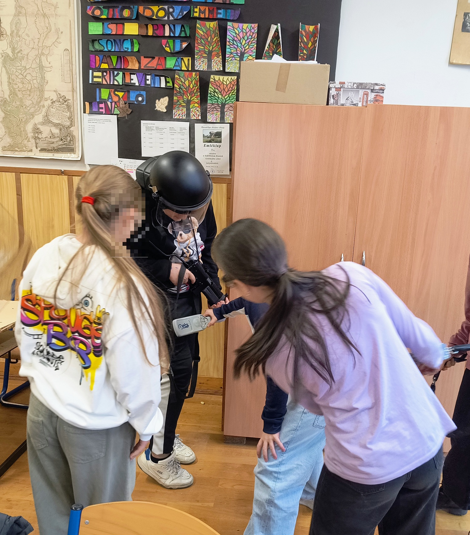 A diákok érdeklődve hallgatták a bv. szervezet tevékenységéről, valamint a rendvédelmi életpálya lehetőségeiről szóló előadást. A műveleti főfelügyelő bemutatta a rendszeresített kényszerítő eszközöket, amelyeket a bátrabbak ki is próbálhattak.