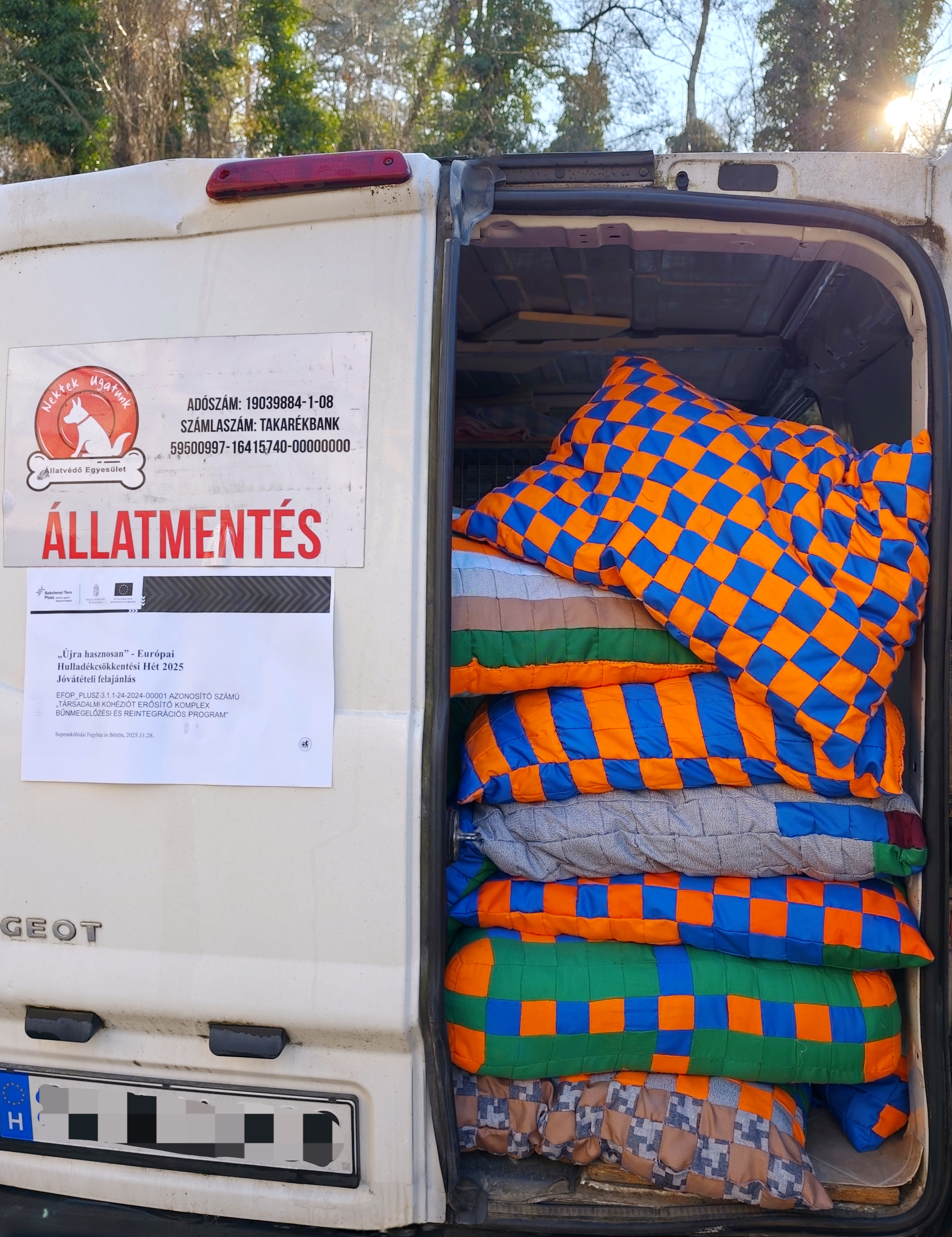 A termékek részben az Európai Hulladékcsökkentési Hét akciójához kapcsolódva készültek, melyek – jóvátételi felajánlás keretében – a Nektek Ugatunk Állatvédő Egyesület vezető-elnökének, Tölli-Molnár Beátának kerültek átadásra 2025. november 28-án a Tómalmi Üdülő aulájában.