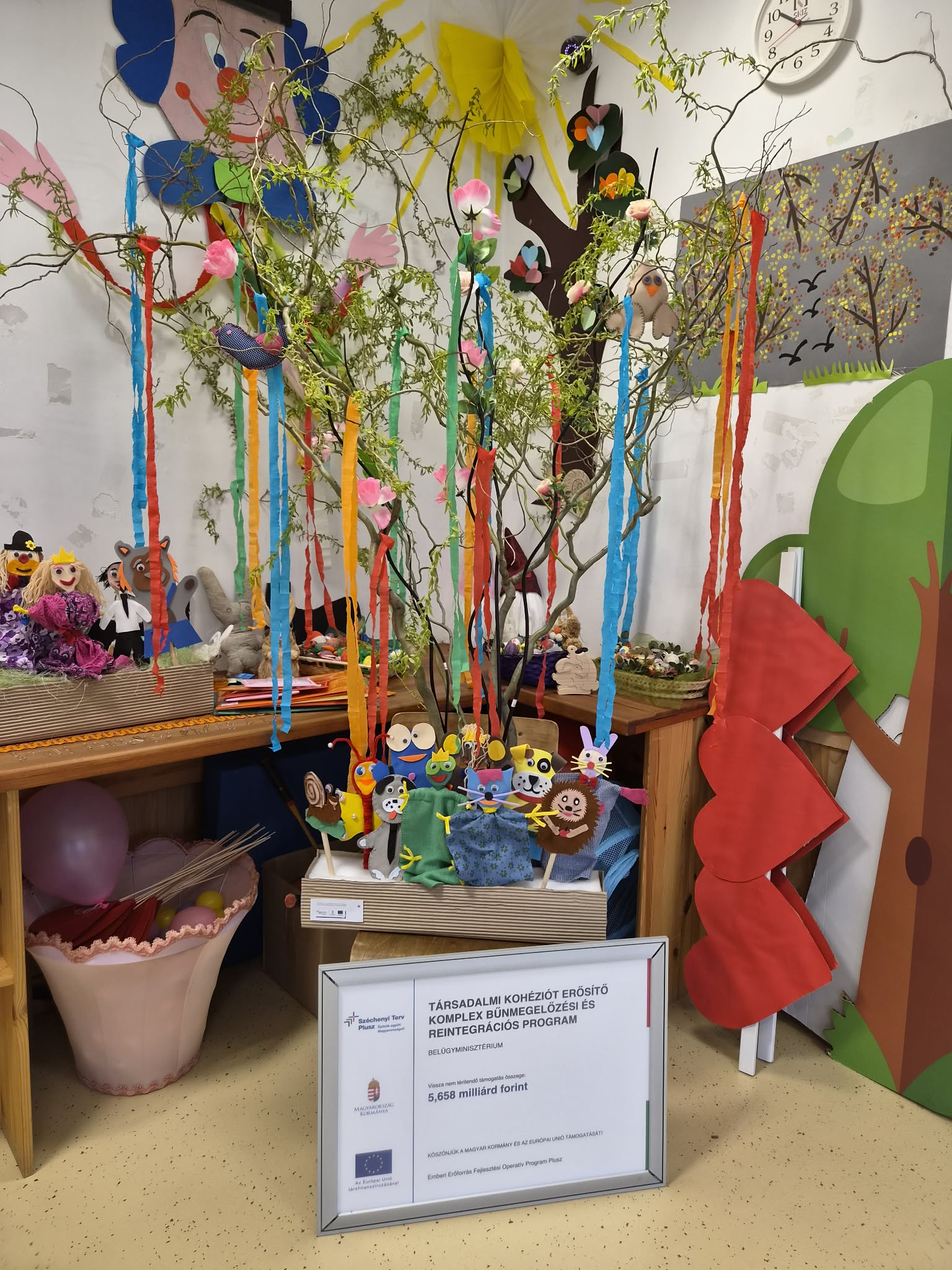 A foglalkozási rehabilitációs szolgáltatás keretében készített ajándékokat Takács László bv. alezredes, megbízott parancsnok adta át Tóth Ferencnének, a Kamasz-Tanya elnökének 2026. március 31-én. Az átadáson túl húsvéti hangolódás keretében a fiatalok hímzett, varrt tojásokat is kerestek, majd ezt követően feldíszítették a húsvéti tojásfát, kipróbálták a fejlesztőjátékokat. Az ellátottak egy kis énekes-táncos műsorral köszönték meg a felajánlott termékeket. A bábokkal a későbbiekben szeretnének egy előadással is készülni a nyári tábor vendégei részére.