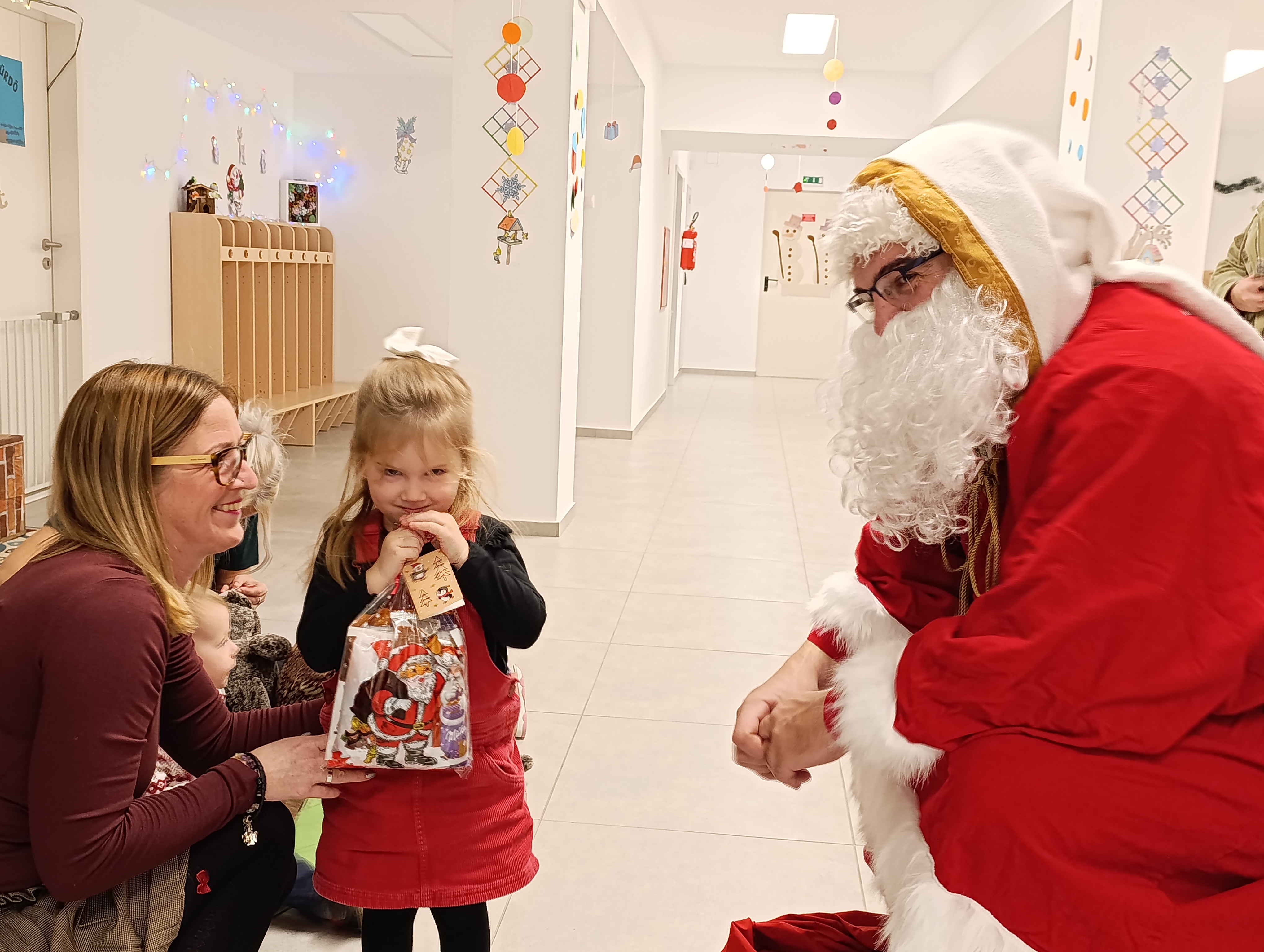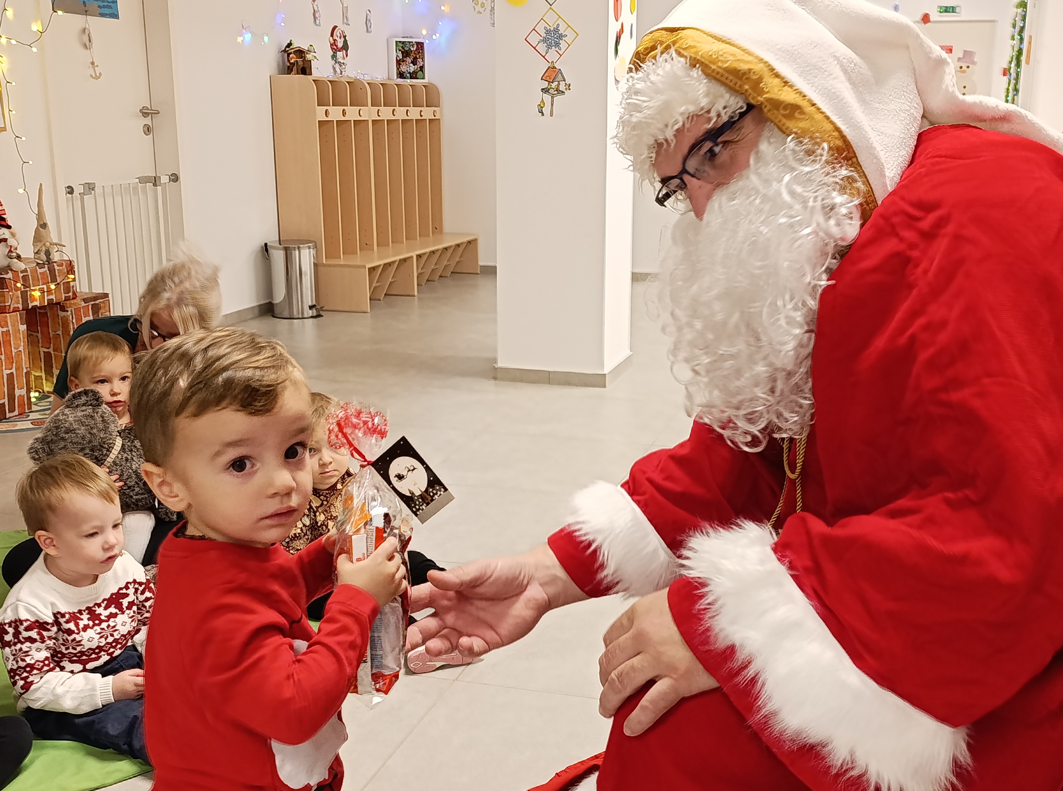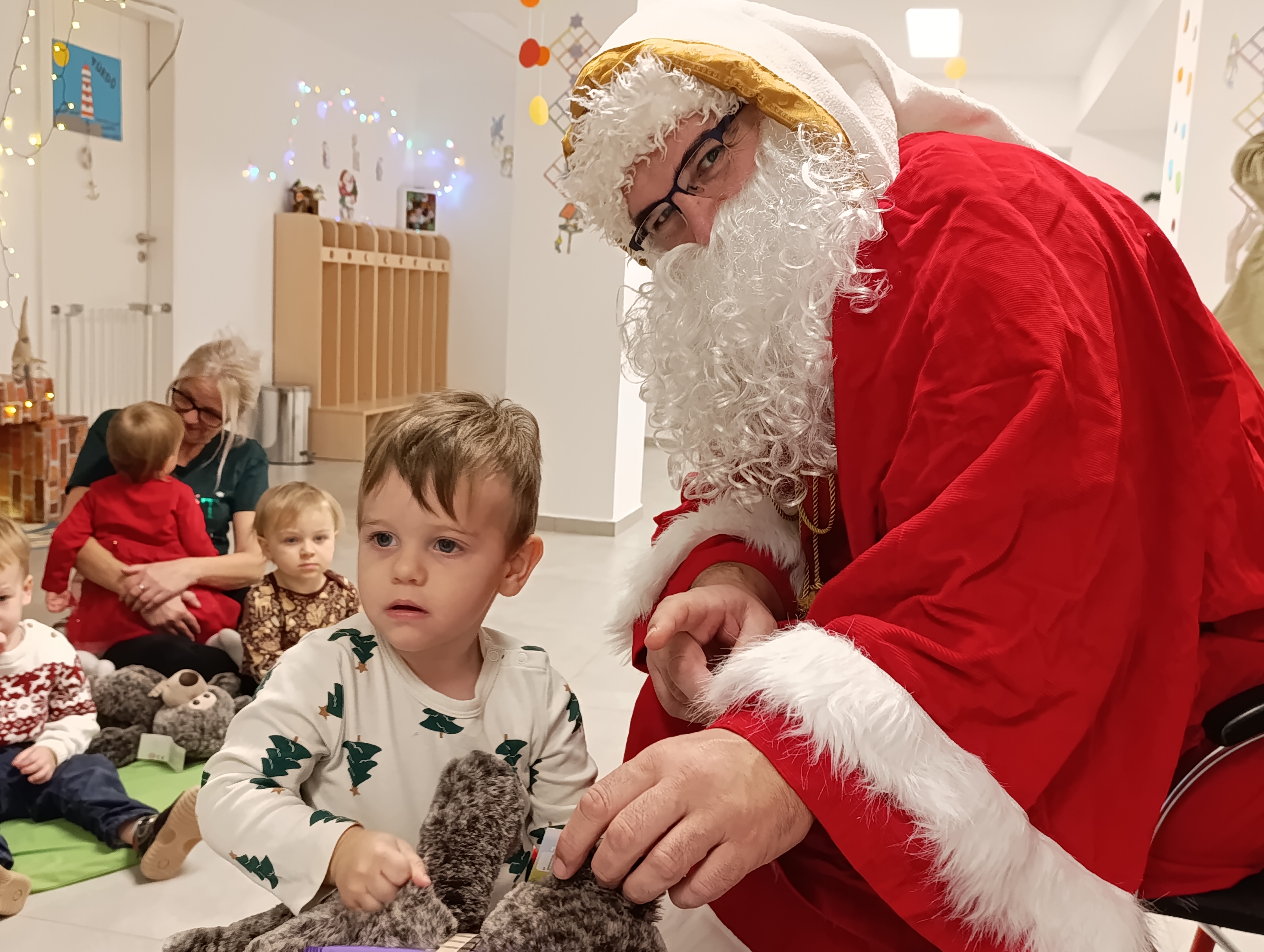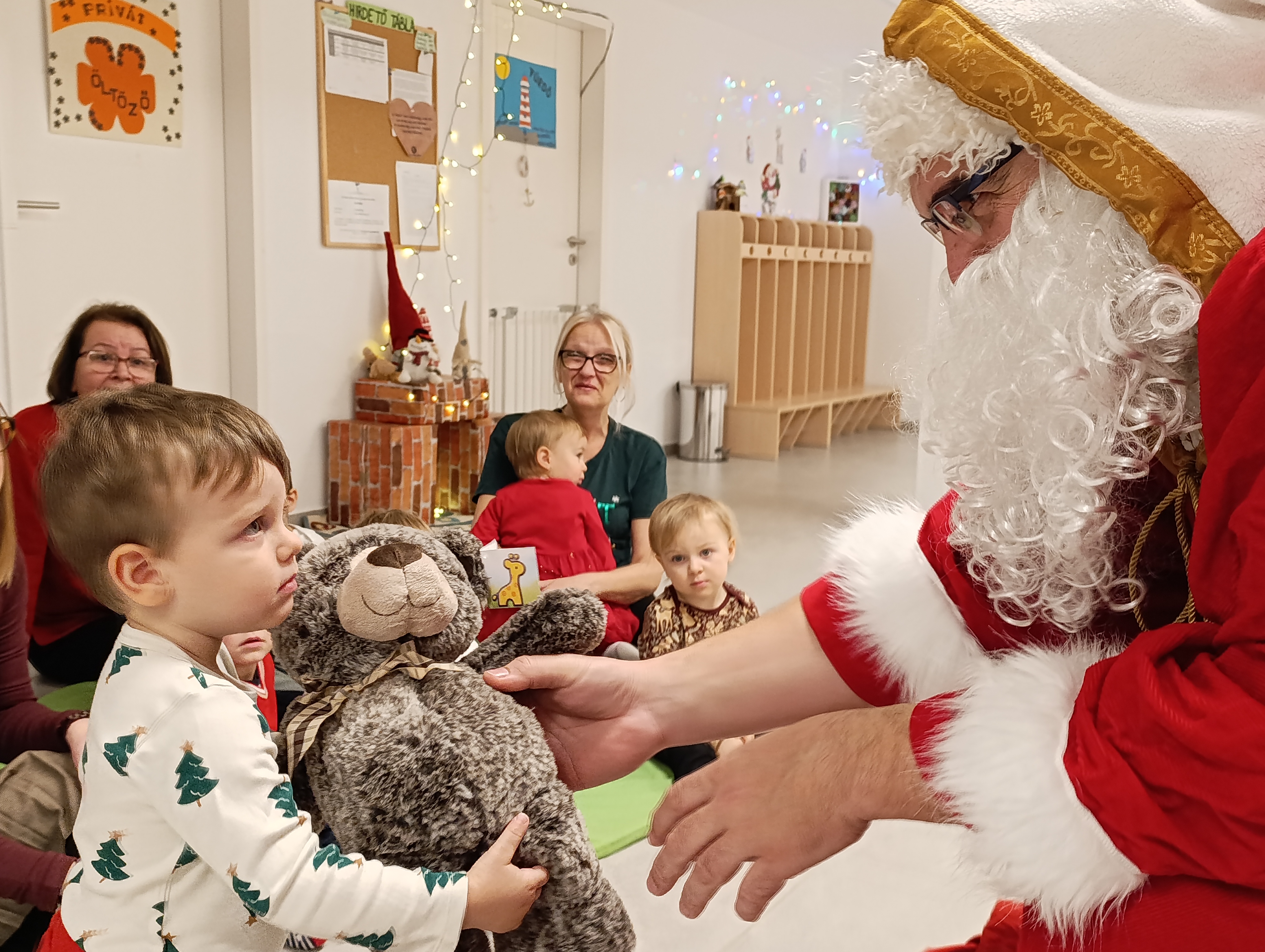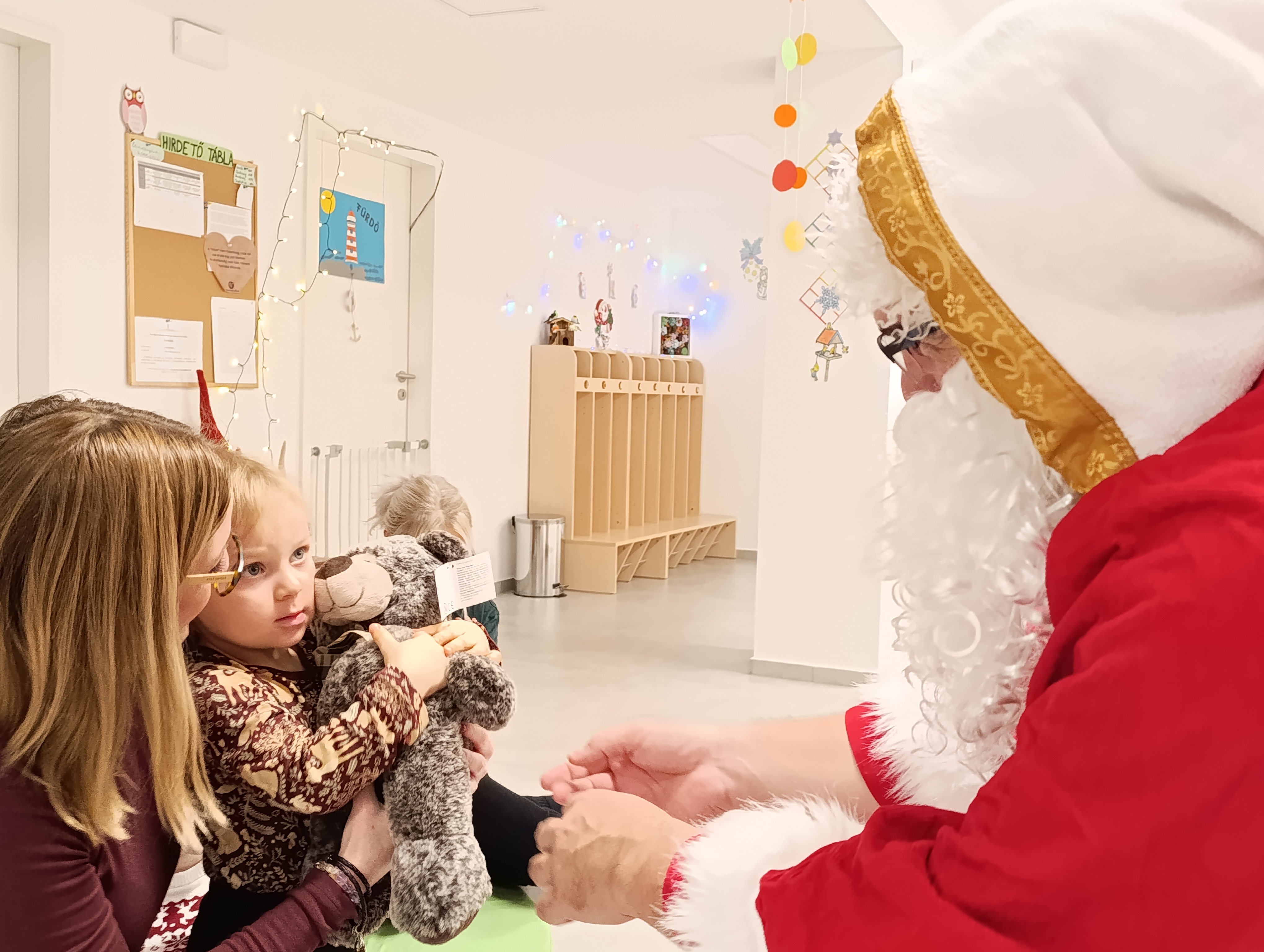 A Böri Bölcsi gyönyörűen feldíszített aulájában kisgyermeknevelőik és dadusaik ölébe kuporodva, énekelve várták a Mikulást a kisgyerekek. A Nagyszakállú tíz óra után néhány perccel érkezett, leült a karosszékbe, kinyitotta piros zsákját és átadta ajándékait a kicsiknek: plüssmaciknak, csokoládénak, finomságokat rejtő csomagoknak örülhettek a gyerekek. A Mikulásnak – mint kiderült – a memóriája is kiváló, hiszen emlékezett a tavalyi látogatására, így azt is tudta, hogy az akkori bölcsisek közül többen már óvodások. Ahogy illik, most is megvendégelték a messzi földről érkezett Nagyszakállút: meleg tejecskével, diós bejglivel kínálták, amit jóízűen el is fogyasztott. Közben a kisgyerekek is felbátorodtak, többen odamerészkedtek hozzá, megsimogatták a szakállát.