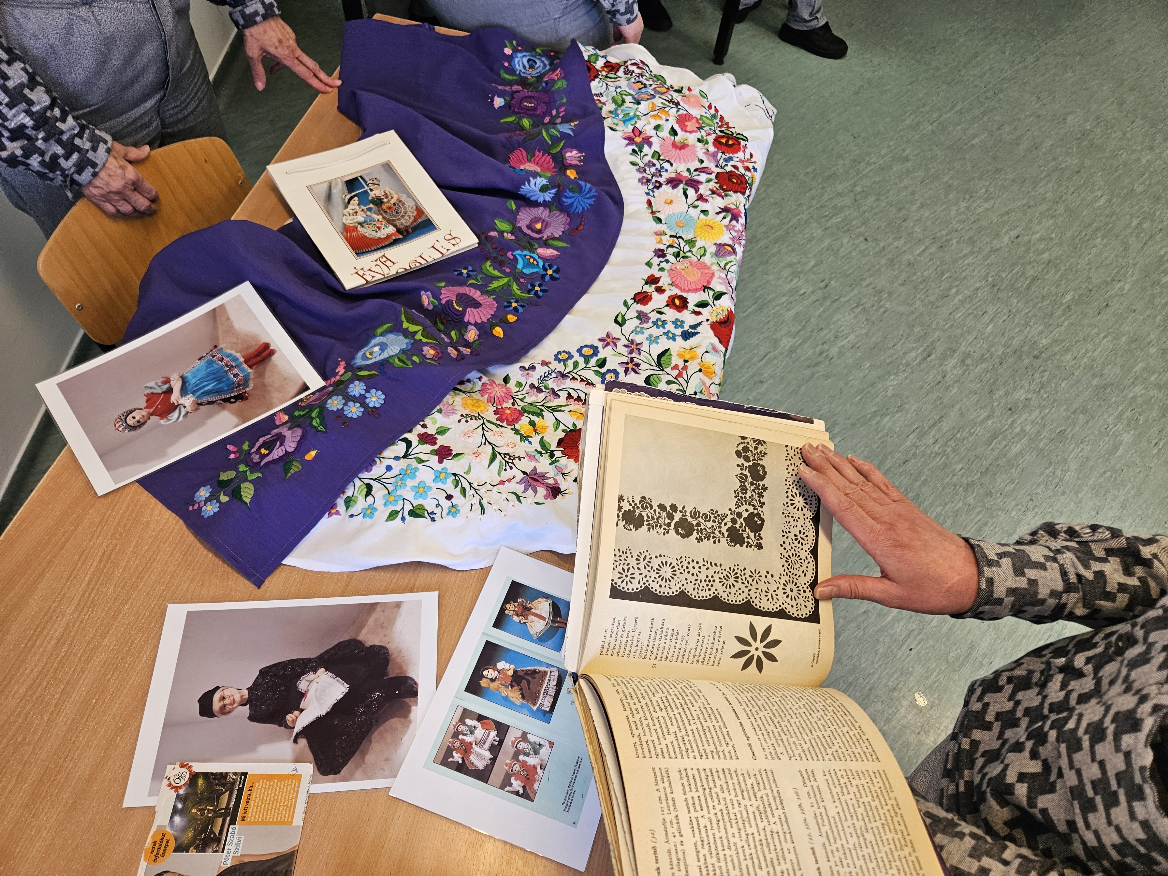 A harmadik stand a népművészet és a kalocsai örökség előtt tisztelgett. A női fogvatartottak egy kalocsai mintákat bemutató összeállítással, fotóillusztrációkkal, valamint két díszes, kézzel hímzett kalocsai terítővel tették teljessé a kulturális utazást. A motívumok nemcsak esztétikai értéket képviseltek, hanem egy olyan hagyományt is, amely generációk munkáját és tudását őrzi.