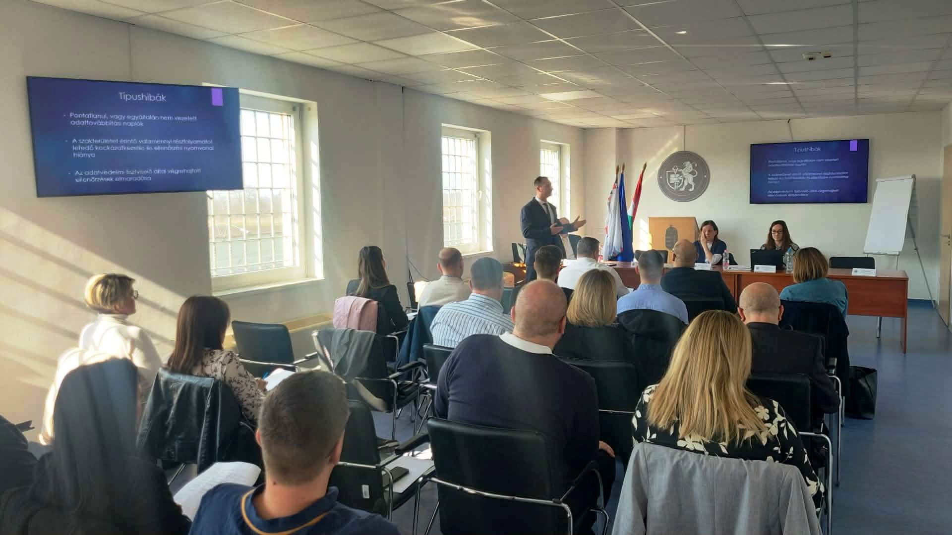 A rendezvényt Kiss Barnabás bv. őrnagy, az intézet parancsnokhelyettese nyitotta meg. A szakmai előadások során szó esett az átfogó ellenőrzések során feltárt adatvédelmi és panaszkezelési típushibákról, az V. Agglomeráció panaszkezelési gyakorlatáról, valamint egyes konkrét panasz- és jogi esetek feldolgozásáról.