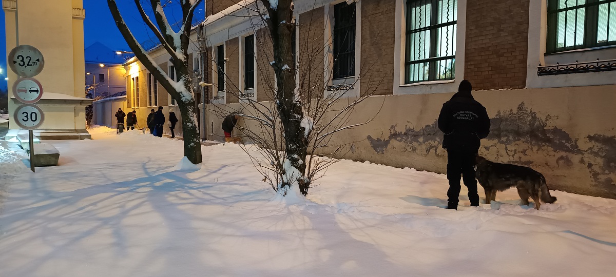 Éppen ezért az intézetben már kora reggel nekikezdtek a hólapátolásnak, síkosságmentesítésenek a kollégák biztonsága érdekében. A belső udvarok, valamint az épület körüli járdák takarítása gyors ütemben zajlott, így zökkenőmentesen indult a munkanap, a forgalom zavartalanul zajlik.