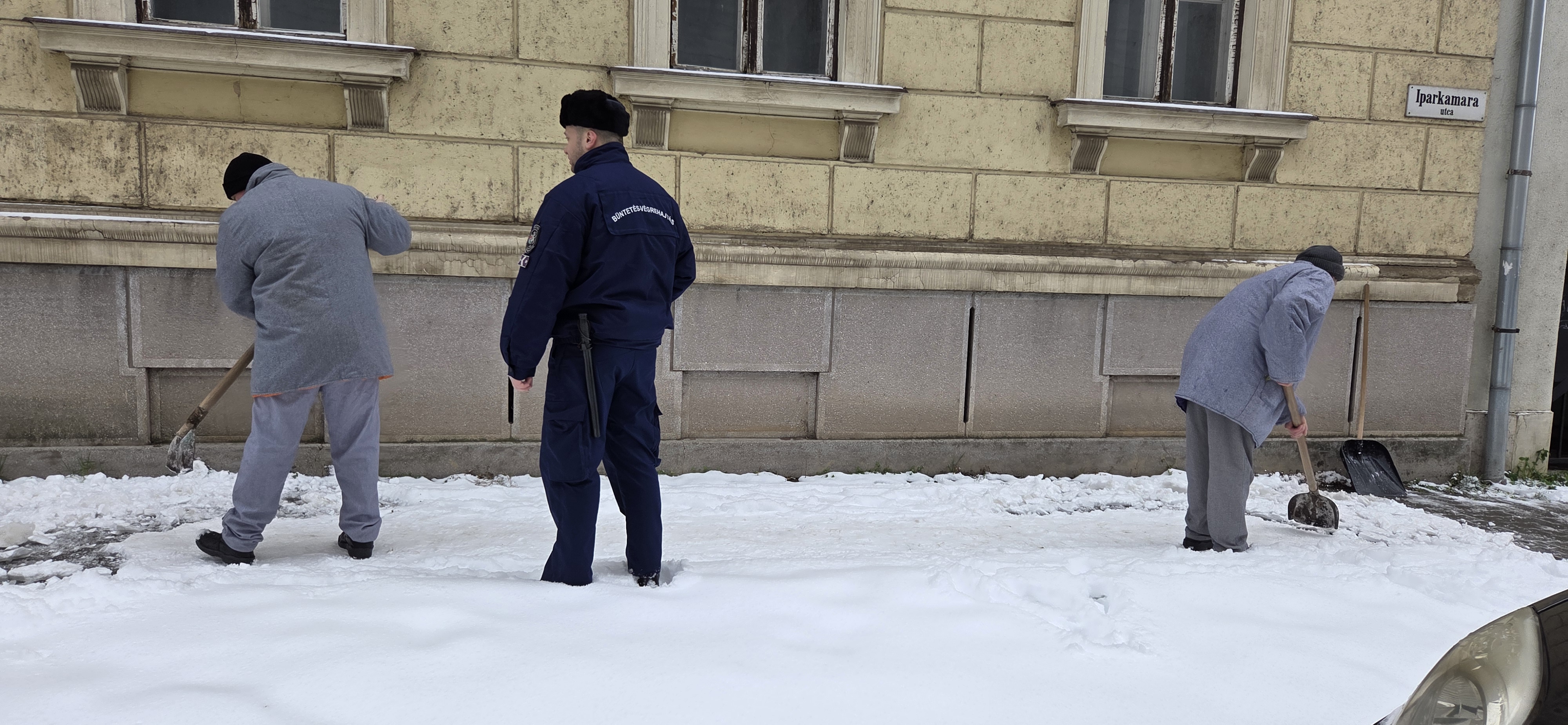 A kora reggeli és a délutáni órákban a Debreceni Börtön épülete előtt szokatlan, de annál hatékonyabb munkavégzésre lehettek figyelmesek az arra járók. Az intézet kijelölt, munkáltatásban részt vevő fogvatartottjai hólapátokkal és sószórókkal felszerelkezve láttak neki a hó eltakarításnak, hogy biztosítsák a biztonságos közlekedést a gyalogosok számára.