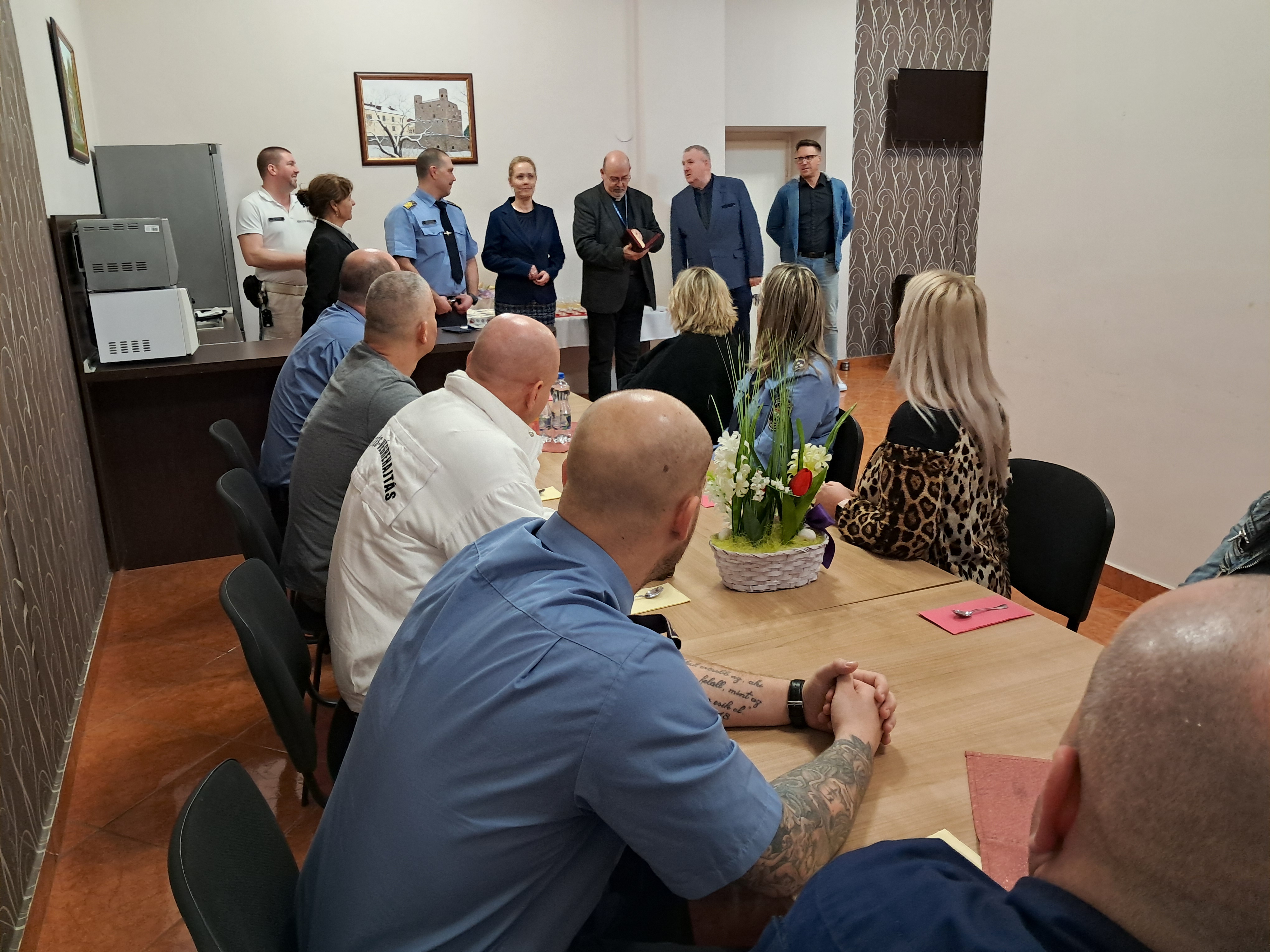 A Sátoraljaújhelyi Fegyház és Börtön parancsnoka, Együd József bv. alezredes és börtönlelkésze, Mészáros Ferenc a házasság hete alkalmából fehérasztal mellett köszöntötte az intézetben dolgozó házaspárokat.