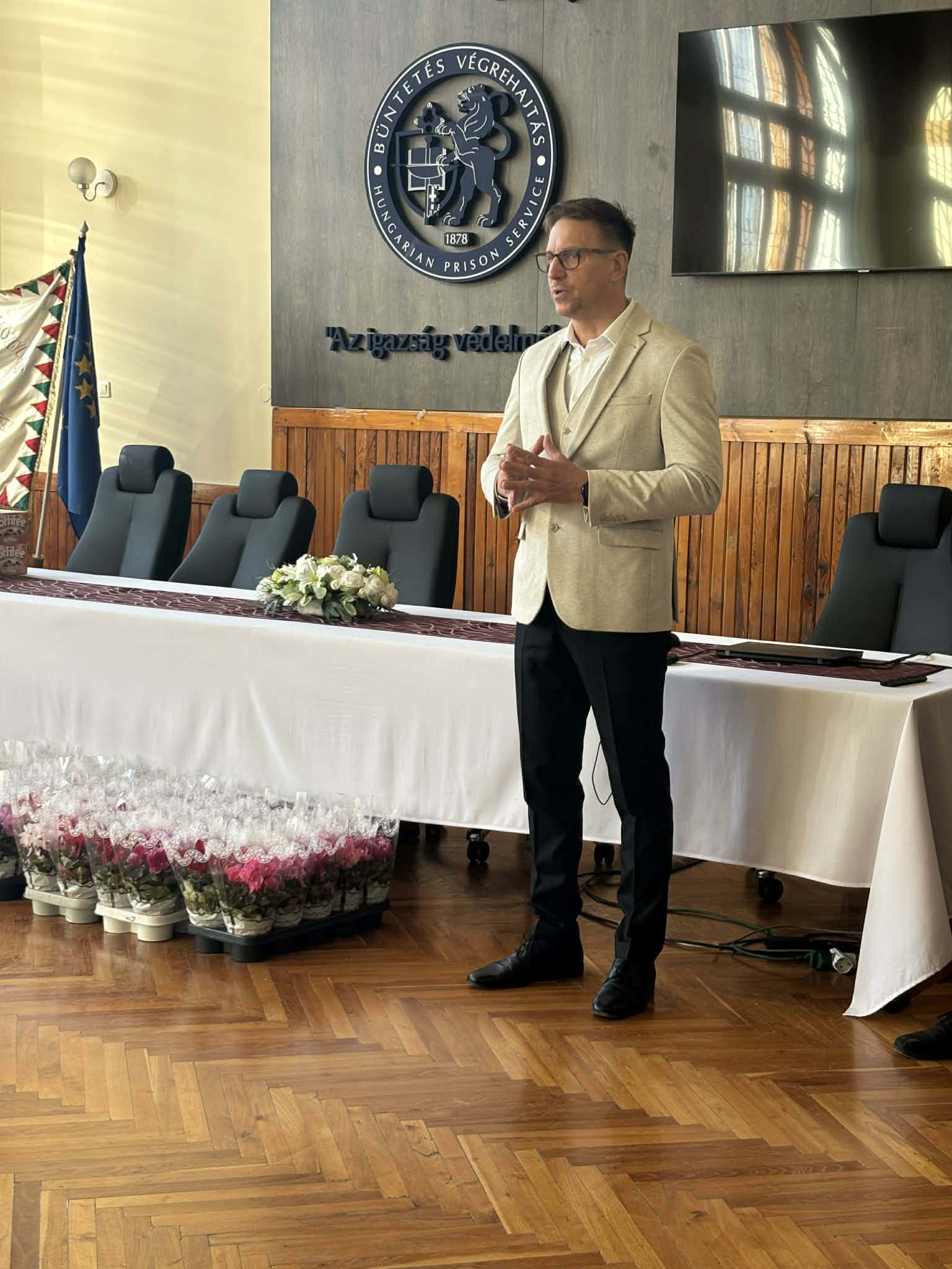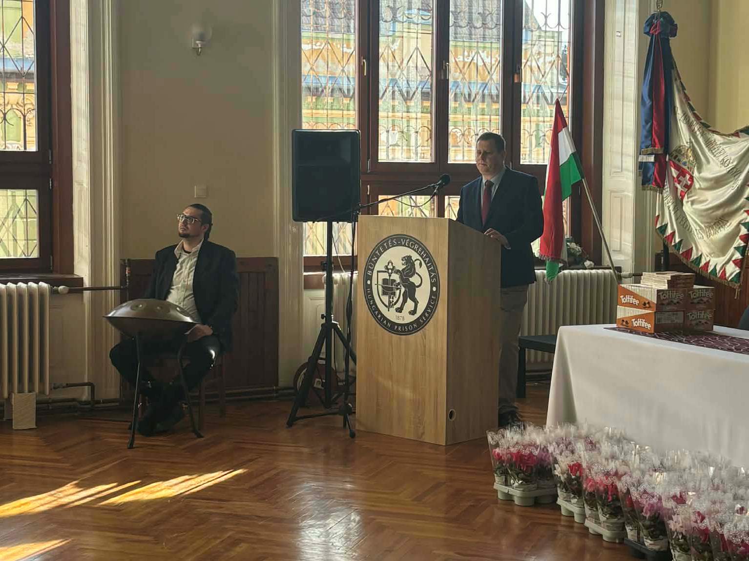 2025. március 6-án reggel az intézet dísztermében kezdődött kolléganőink munkanapja, ahol Széll Roland bv. alezredes, parancsnok-helyettes ünnepi köszöntőjéhez kapcsolódóan egy igazán különleges zenei élményben lehetett része a hölgyeknek. Kirik Sándor, a Lavotta János Alapfokú Művészeti Iskola ütőhangszer tanára a nőnap ihlette improvizációit adta elő handpan-en az intézetben és az Ipoly Cipőgyár sátoraljaújhelyi fióktelepén dolgozó munkatársainknak, amit zárásul a virágok átadása követett.